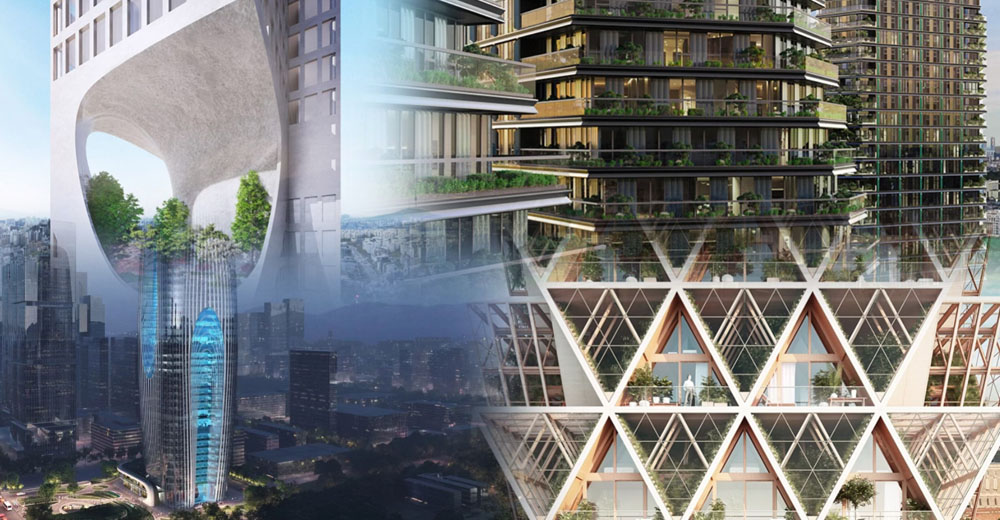 | Оптимизация лифтов | Энергоэффективность зданий | Бионический дизайн | Композитные материалы | Вертикальное озеленение |